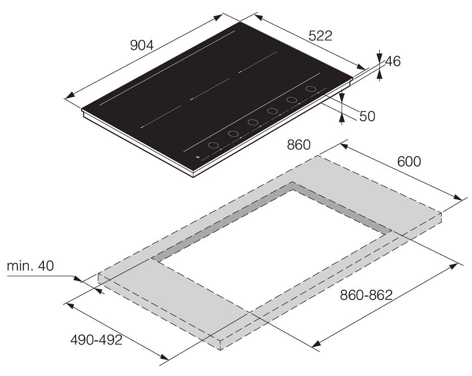 - Монтажные размеры (Ш х Г), см: 86-86.2 х 49-49.2.
